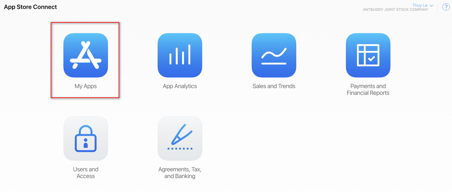 Bước 1: Đăng nhập vào https://appstoreconnect.apple.com/login