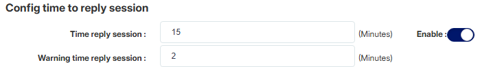 * Thiết lập cảnh báo trước khi hết thời hạn phản hồi *(2)*. Ví dụ thiết lập 5 phút, thì trước khi hết thời hạn phản hồi ở *(1)* 5 phút, nhân viên phụ trách sẽ nhận được thông báo cảnh báo session sắp hết hạn