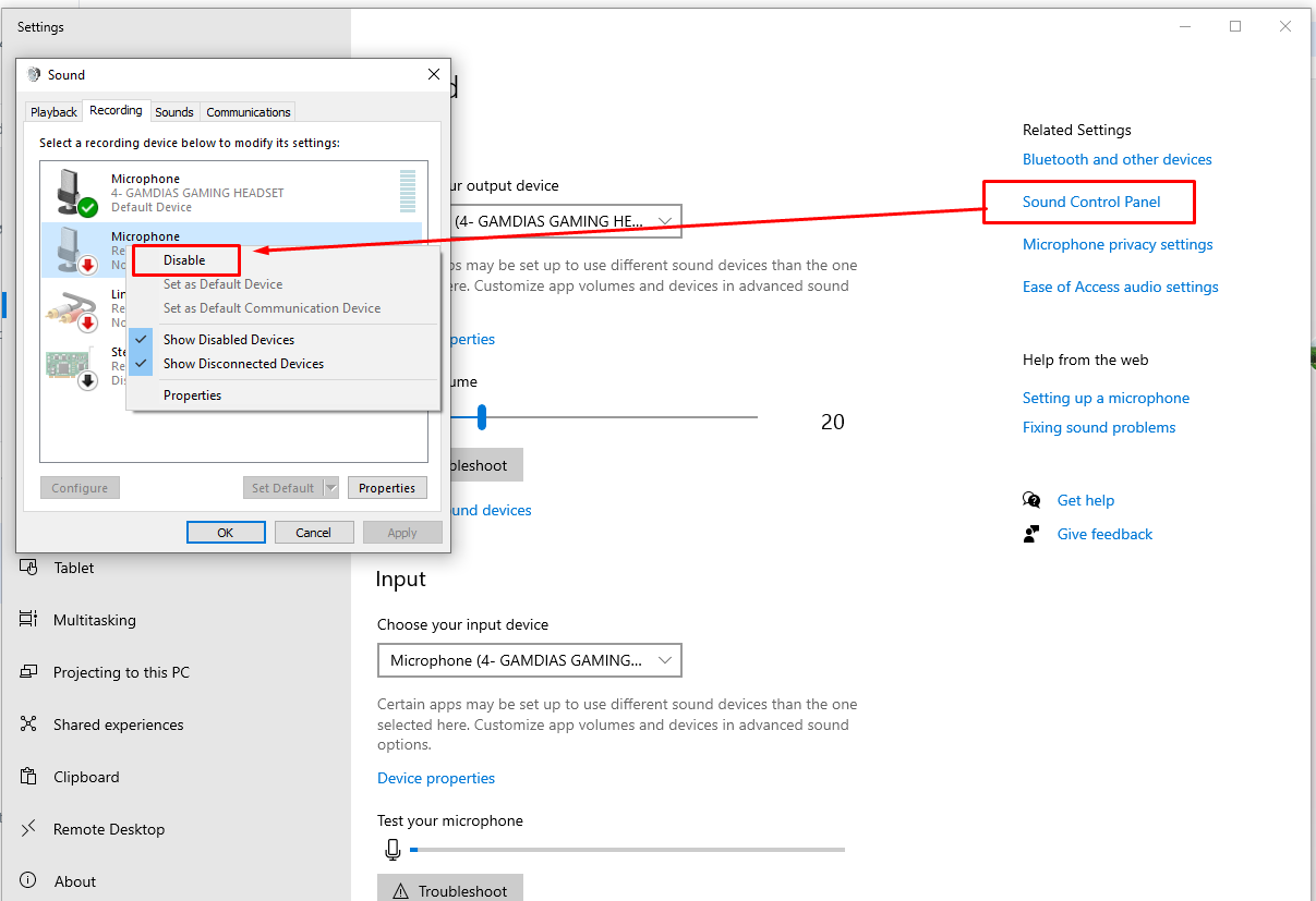 Máy tính dùng tai nghe có jack nối, dẫn đến tình trạng lúc nhận được mic lúc không ⇒ Disable các device in/out không dùng.